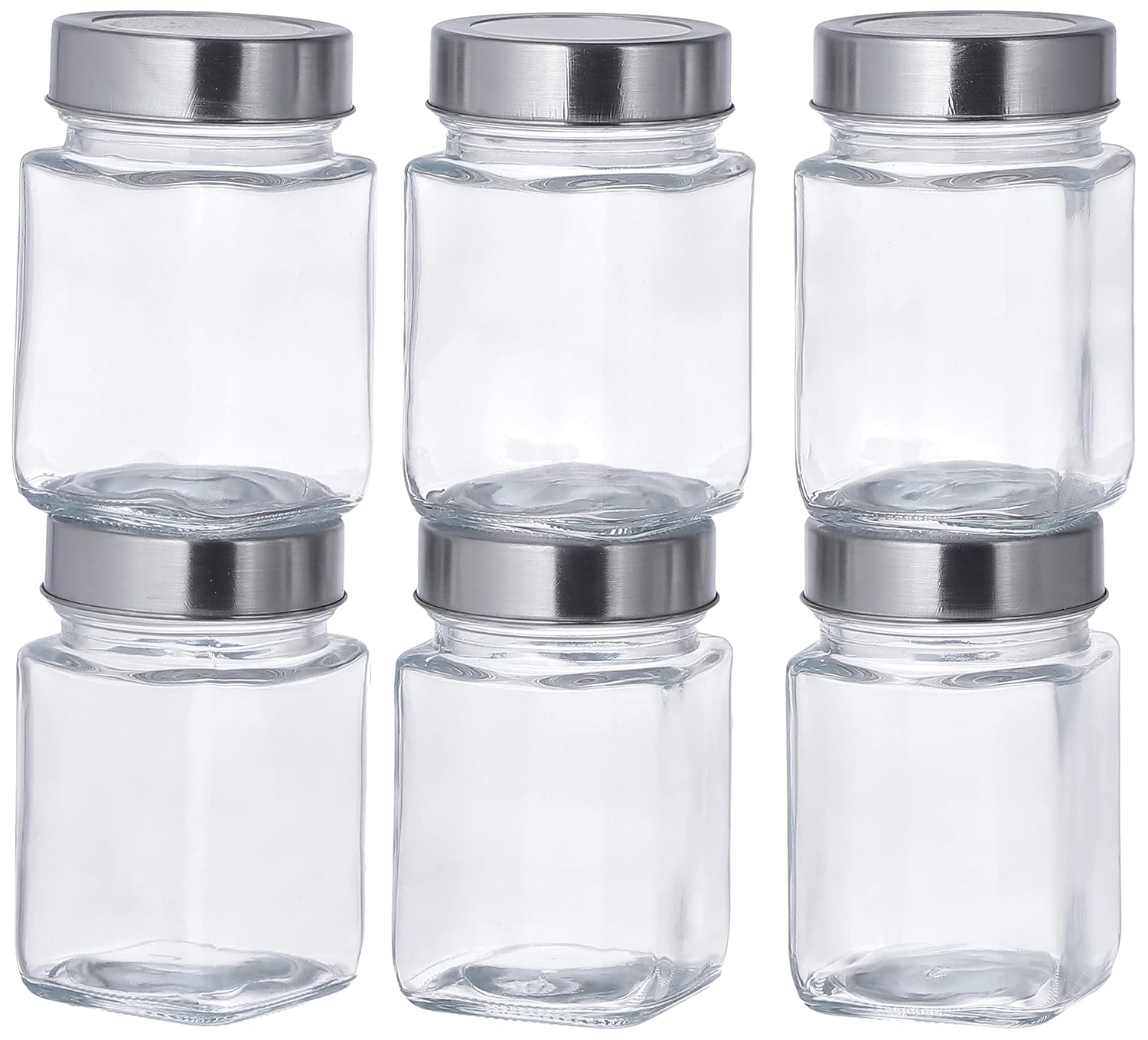 Square Glass Storage Containers | Set Of 6 | 310 ml Each | Transparent