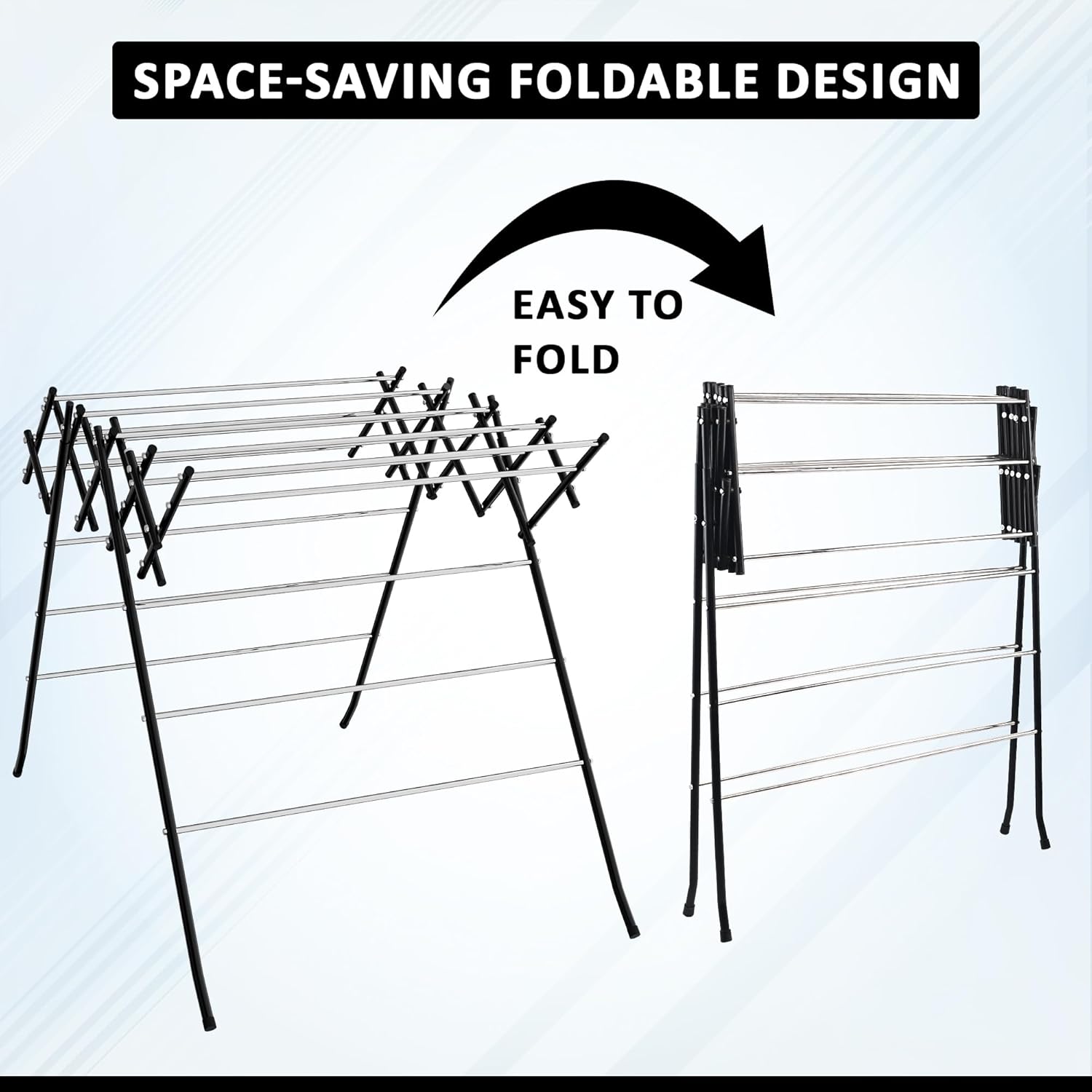 Make laundry day easier with the Stainless Steel Foldable Cloth Drying Stand – practical, durable, and space-efficient! 🌿